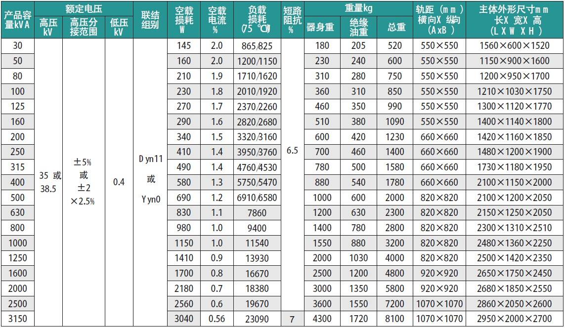 變壓器廠(chǎng)家技術(shù)參數(shù)表